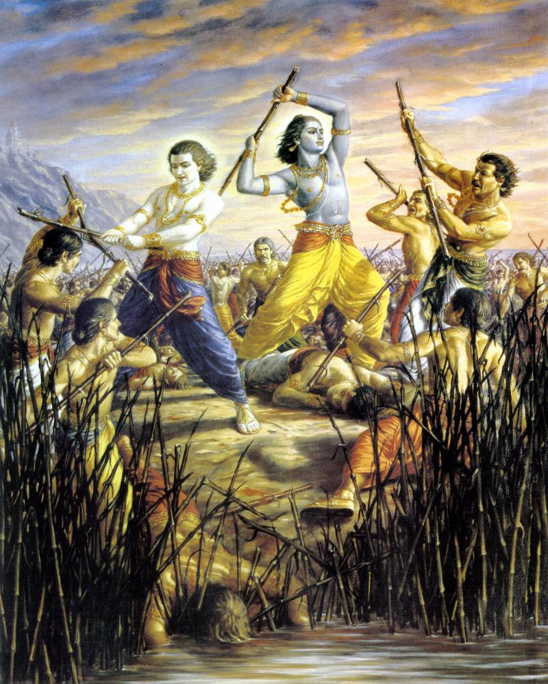 And just before as Lord Krishna was about to leave planet earth, He arranged by His supreme will a fight so that to respect the curse of Gandhari that near and dear one of Lord Krishna (Yadav's) will be destroyed, Lord Krishna arranged Musal parva. And since those Yadav's who came with Lord Krishna to assist Him in His bhauma lila, wanted to return back to Golok Vrindavan in Spiritual sky before Lord Krishna's departure. They cannot live without Lord Krishna. So Krishna arranged this musal parva at Pravash kshetra in Gujarat to wind up His earthley pastime and return to the Spiritual Golok Vrindavan-His eternal abode.