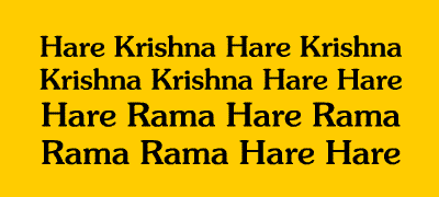 “These sixteen words--Hare Krishna, Hare Krishna, Krishna Krishna, Hare Hare/Hare Rama, Hare Rama, Rama Rama, Hare Hare--are especially meant for counteracting the ill effects of the present age of quarrel and anxiety.” (Kali-santarana Upanishad)