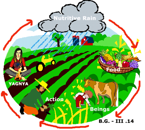 Diet is also further divided not only by different foods at certain times of the day, but also by whether the food is in the mode of goodness (sattvic), passion (rajasic), or darkness (tamasic). Foods in goodness are vegetarian (fruits and vegetables) that promote health, peace of mind, happiness, and enlightenment. Rajasic foods are often based on taste and can be spicy. These lead to mental agitation, passion, and disease. Tamasic foods include those that are old, often of little taste, stale, of little nutritional value, and can lead to delusion, laziness and sleep. So simply by the study of food one can direct the diet toward a happier and more peaceful life.