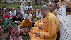 Furthermore, Hinduism is not based solely on one personality or teacher. It is not like Catholicism which has one pope who is said to be the sole authority over all other Catholics who must obey the dictates of this one man. Hinduism can and does accept the teachings of numerous spiritual guides. Even if a person is initiated by a particular spiritual teacher or guru, it is often seen that the disciples, once having clearly understood the teachings of their own master, may also consider the teachings of other advanced devotees or masters in their sampradaya, or disciplic line of authorities. In fact, it is recommended that to be sure of following the spiritual path correctly, any instructions should be compared to a system of checks and balances. These are guru (the spiritual master), sadhu (other spiritual authorities), and Shastra (the instructions in the Vedic texts). If these all line up with the same instruction, then there is no problem. If any one of them differs, then it should be investigated as to the reason why. If something is off track or not correct, then it should be adjusted. This is how one can always be sure that he or she is following the proper spiritual methods without going too far the wrong way, or without being misguided by a guru who may not be as pure or advanced as people may think. Thus, the Vedic system again provides a means for assuring yourself of the authority and potency of the method and teacher you accept.